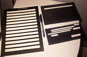 Non-optical devices such as bold line note books, letter writing guide, Typoscope, Signature Guide, Notex etc.